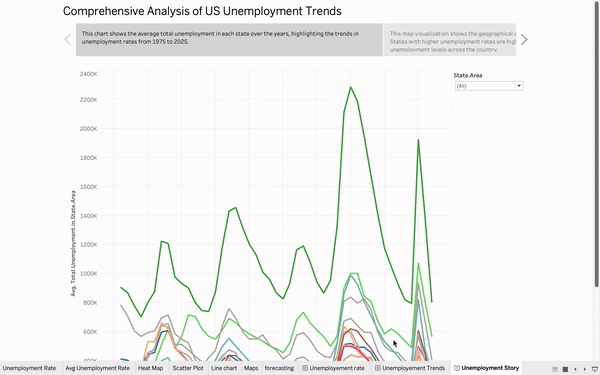 The project doesn't just show rates; it analyzes economic downturns (such as the 2008 financial crisis), the civilian labor force, and regional disparities to help policy makers