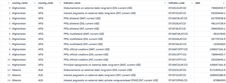 Designed and executed advanced SQL queries to extract relevant debt data by country and debt category.