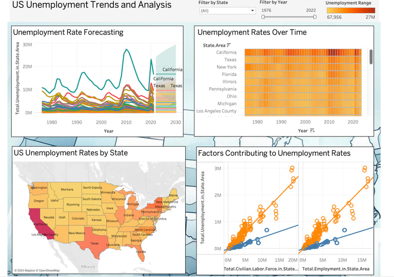 This project provided a comprehensive analysis of unemployment trends in the US, offering valuable insights into the factors influencing unemployment rates and helping to identify areas needing attention.
